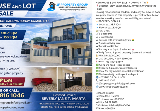 HOUSE & LOT FOR SALE – ALBUERA, LEYTE Looking for a home with great location and investment potential? This clean titled property located along the National Road offers convenience, accessibility, and strong rental income potential. Property Details: • Lot Area: 300 SQM • Floor Area: 150 SQM • 3 Bedrooms • 2 Comfort Rooms • […]