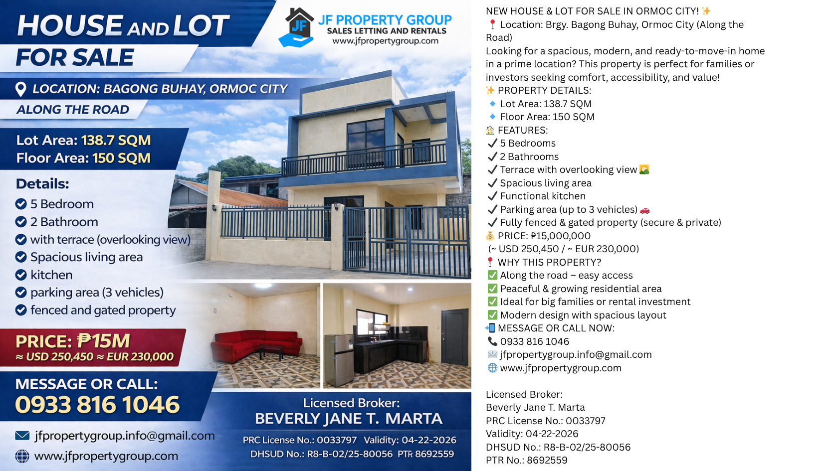 This House style property is located in is currently For sale Houses for sale and has been listed on JF Property Group. This property is listed at ₱ 15,000,000.00. It has 5 beds bedrooms, 2 baths bathrooms, and is 150 m². The property was built in 2024 year.